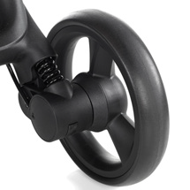 🛞 Ruedas giratorias con suspensión y freno centralizado, que ofrecen una conducción suave en ciudad.